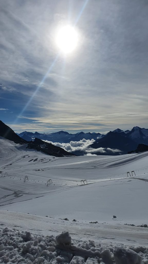 ALPS FORECAST| The week ahead looks like it should see a mixture of sunshine and showers up on the glaciers. It’s marginal, as it generally is at the time of year, whether those showers fall as rain or snow. Currently, models are pointing more to rain with temperatures a little above freezing, but it is so marginal it could easily go the other way and we live in hope. It’s currently looking like it should be a little colder and more likely to be snow in Italy and Switzerland than in Austria.