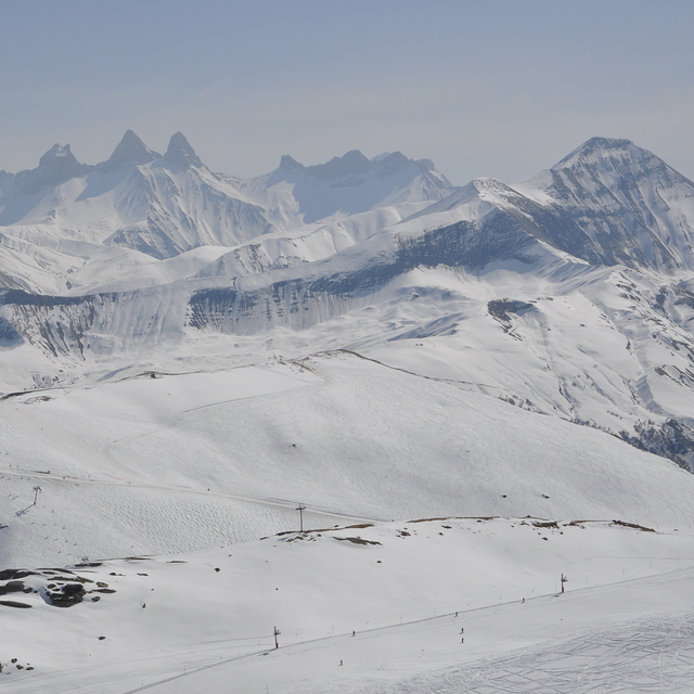 Clear skies at Oz en Oisans. No wind today. About freezing. No new snow. Lifts are all open. The pistes have good snow. The off-piste has variable snow conditions. from Oz en Oisans