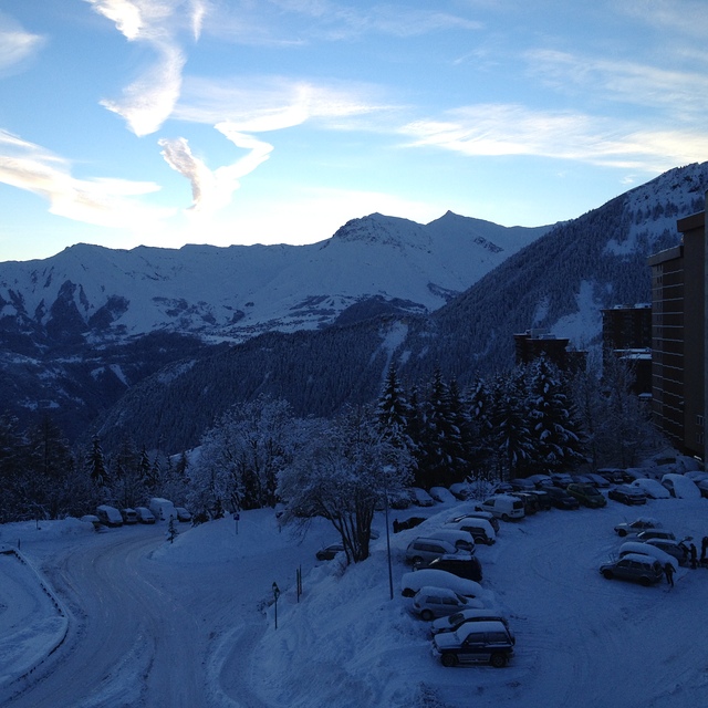 Some clouds at Méribel today. No wind today. Temperatures are around freezing. No new snow. All lifts are open. The pistes have good snow. Insufficient off-piste snow for skiing. from Méribel