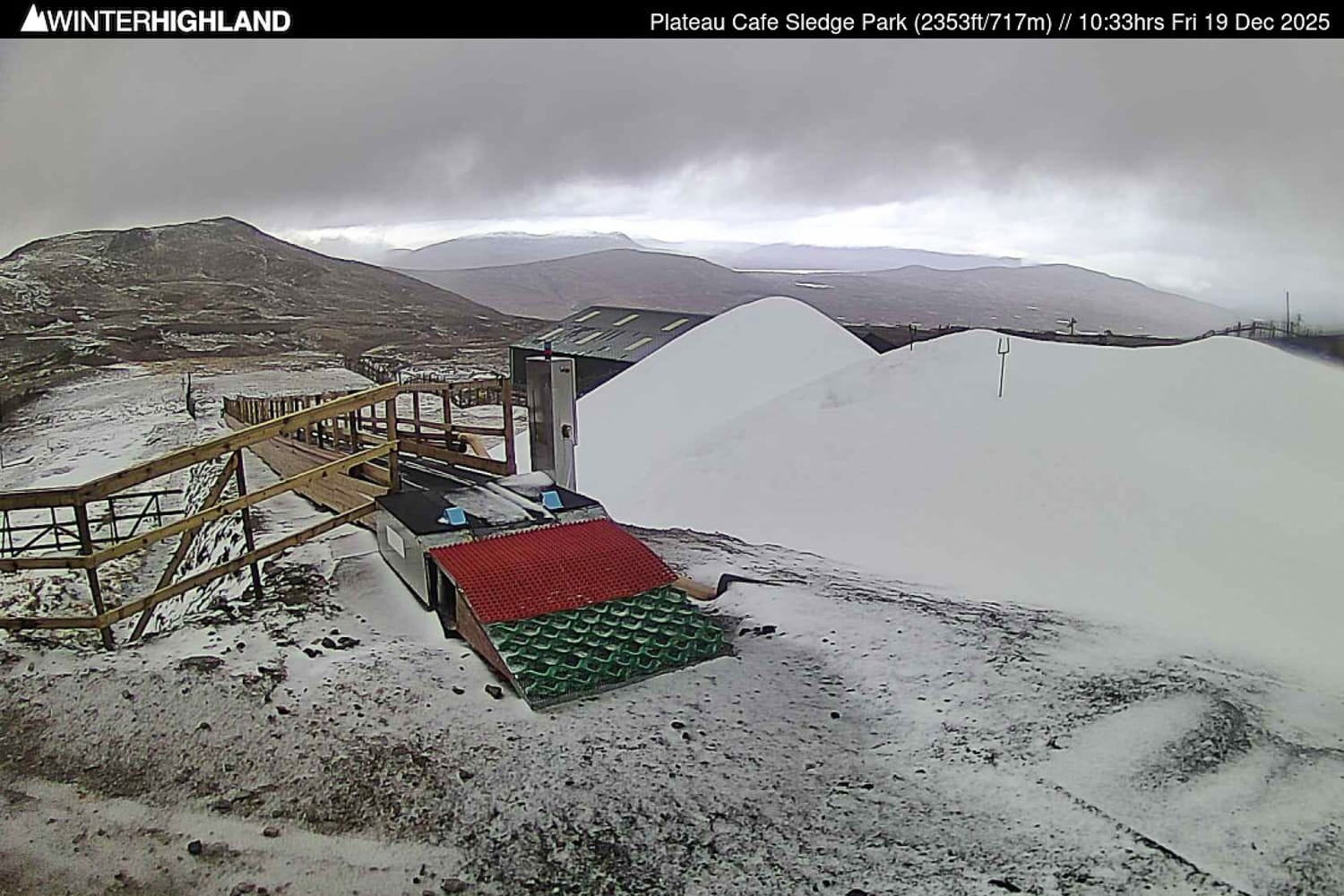 Glencoe currently offers sledging and touring access, Cairngorm has a beginner area open, and Glenshee operates two beginner runs. The Lecht aims to open on Boxing Day.