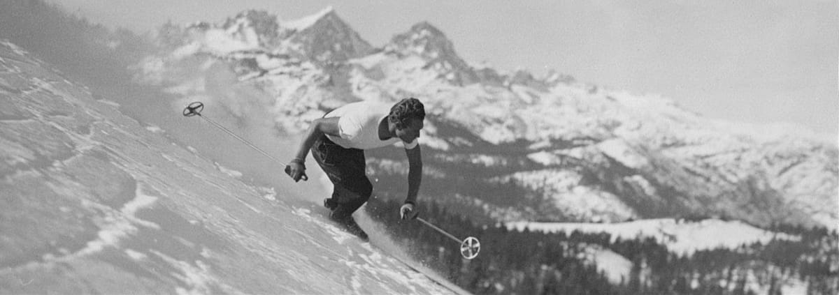 Born in 1915, McCoy’s legend include the fact that he made his first skis himself whilst still at school, and then became Californian state skiing champion aged 22. He set up his first rudimentary ski area in 1938, before hitting on the more snowsure location for Mammoth Mountain in 1942.