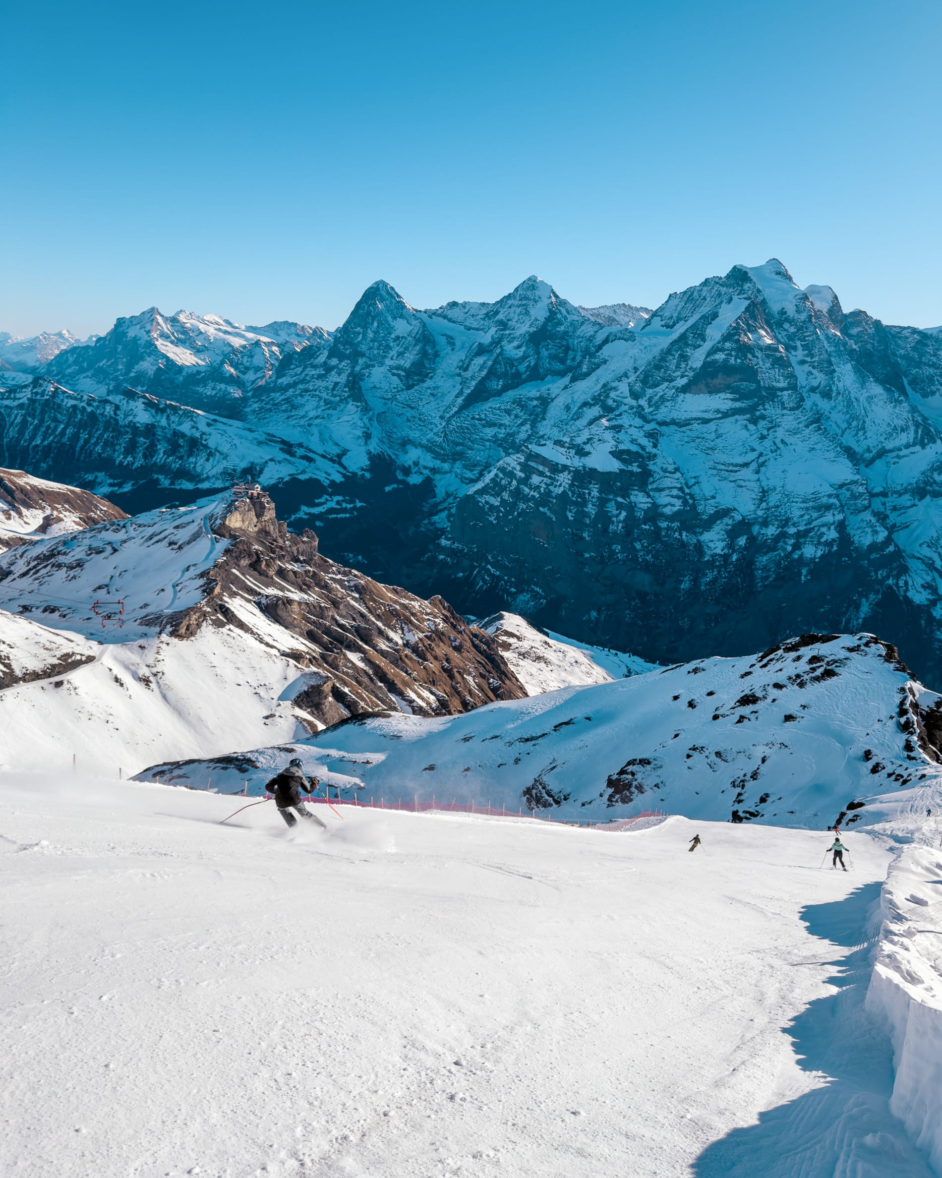 The majority of ski areas are suffering from too little snow, as usual, and the smaller, lower resorts, a chunk of which remain closed. Glacier 3000 (170/380cm / 68/152”) near Gstaad continues to post the world’s deepest base. Zermatt-Cervinia’s cross-border ski area has the most terrain open, about 240km (150 miles) of runs.