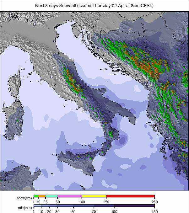 The biggest accumulation was reported in Abruzzo, where Campo Imperatore saw 50cm (20"). Northern resorts such as Sestriere typically recorded 20–40cm (8–16") over recent days.