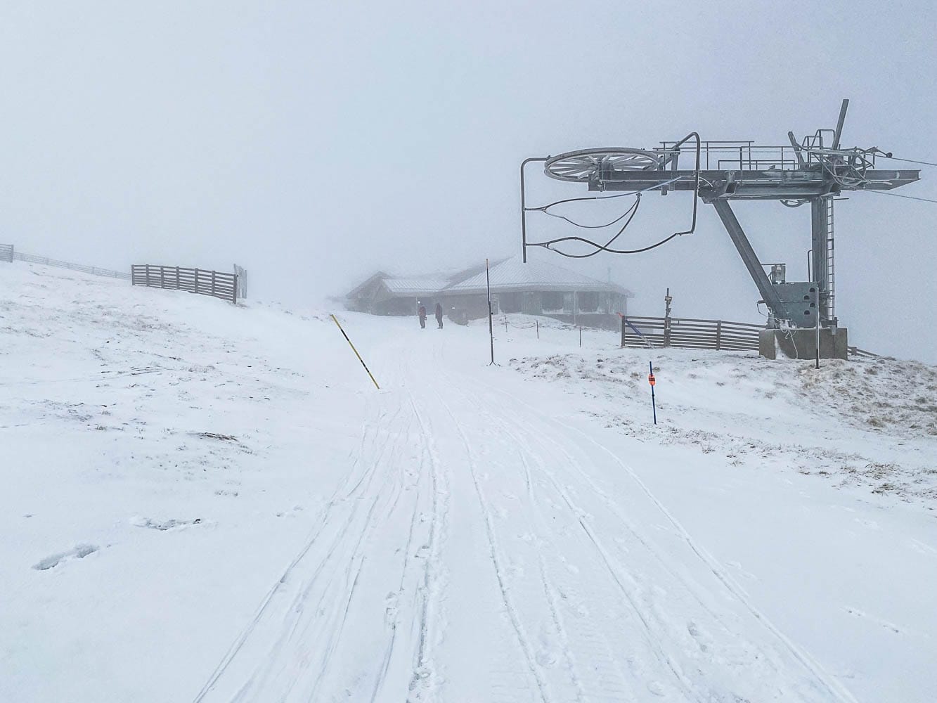 By Sunday, though it was cold and snowing once more, the centre had reopened beginner terrain at the top of the slopes. Glencoe also reopened its access chair, and several centres posted images of snow being produced by their all-weather snowmaking equipment.