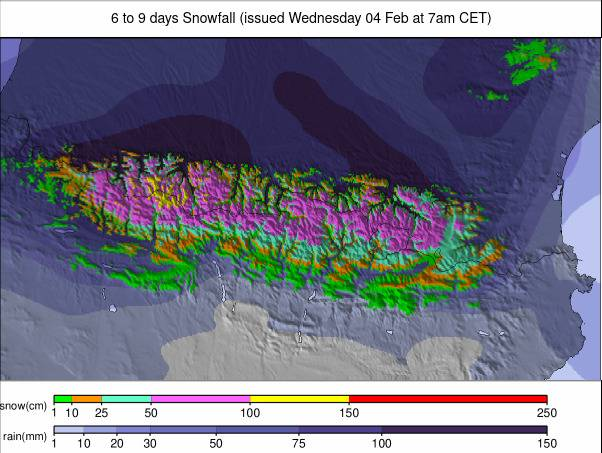 It’s been a great week for fresh snowfall in the French Alps (and Pyrenees). The snowfall last week in the southern Alps continued with fresh fronts bringing still more through the weekend and the start of this week. Three-day accumulation totals included 70cm (28”) in Val d’Allos (145/205cm / 58/82”) and 60cm (24”) at Superdévoluy / La Joue du Loup (30/150cm / 12/60").The snowfall then started getting heavier further north, with La Clusaz (60/210cm / 24/84") posting 60cm (24") to start the new week.