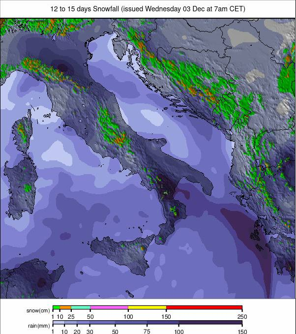 Freezing levels are climbing with many mid-mountain areas above zero during the day. Higher terrain in the Dolomites and Aosta Valley stays colder (-7°C to +2°C). Valley highs may reach +10°C. Snowfall prospects remain very limited.