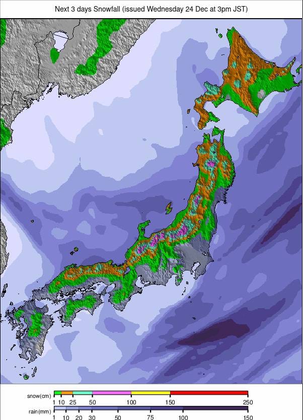 Snow continues to fall across Honshu, with bases building steadily at major resorts in Nagano and Niigata. While snowfall rates have not quite matched those seen on Hokkaido, conditions continue to improve thanks to repeated refreshes and generally favorable temperatures.