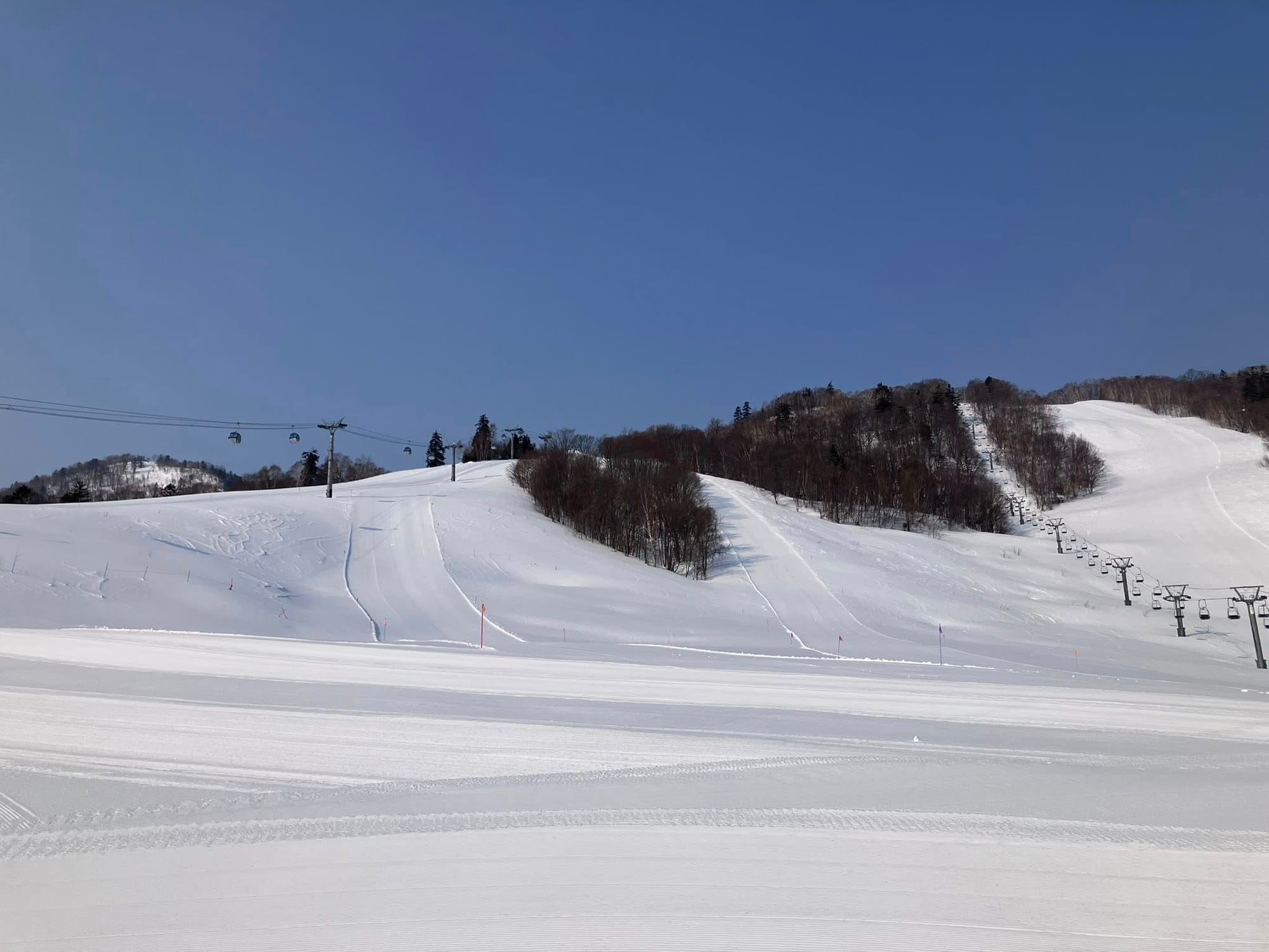 Further south, Honshu’s major resorts have transitioned into classic spring conditions. Freeze–thaw cycles are now the dominant pattern, with limited new snowfall. Resorts including Hakuba, Nozawa Onsen and Shiga Kogen still maintain solid upper-mountain coverage, though lower slopes are thinning.