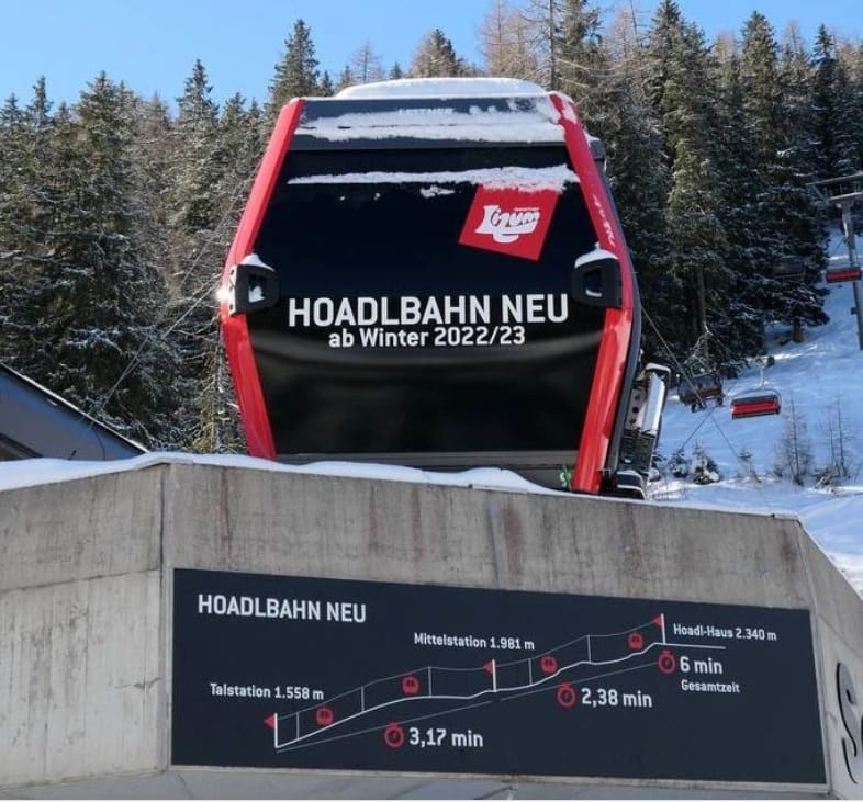 The new Hoadlbahn gondola will feature 75 spacious cabins, each able to carry 10 people up to the ski area’s summit in just six minutes. The lift’s base building at 1,558m will house ski and rental shops and offices and be located next to bus and car parking.