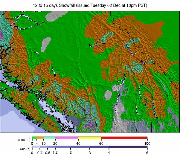 It’s a relatively mild spell this week, at least compared to freezing January, with many lower and mid-mountain bases climbing well above freezing during the day, in some cases reaching +5 to +10°C. Nights generally dip just below zero, occasionally down to –5°C in sheltered valleys, keeping the surface firm enough for morning skiing before softening in the afternoons. Higher elevations in the Rockies and Coast Mountains stay colder, holding onto more consistently frozen snowpack. Light snow showers are expected, but accumulations look modest, with more meaningful snowfall possible toward the weekend as a Pacific system approaches and temperatures cool slightly. Further north, though, huge snowfalls are forecast for the heliski regions of northern BC.