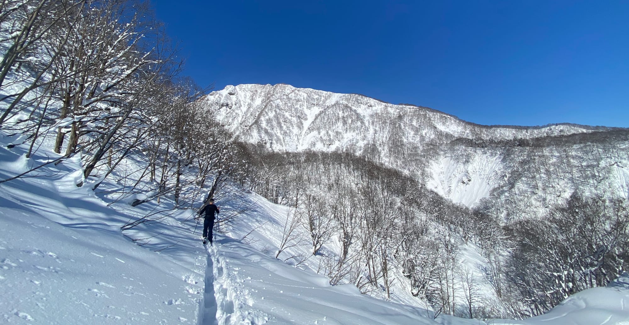 To the left ends at the Tsubame Highland hotel, a grand building surrounded by beech forest. The stunningly beautiful setting is tranquil and feels very isolated. You might be forgiven for thinking that there is not much here for skiers and boarders besides being a base for Seki. Not so. This is a backcountry nirvana and it is much less remote than it seems.