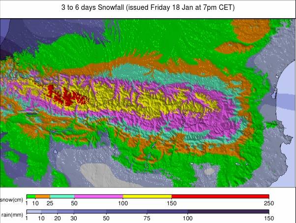 Following the heavy snow from Christmas to mid-January in the Eastern Alps, it’s looking much quieter over the coming week with most areas in the Alps (East and West) expecting 10-30cm from mostly small accumulations through the week up to the weekend. There’ll be a small amount of fresh snow for many areas on Wednesday and for some on Thursday before clearer weather arrives into the weekend. It’s a similar picture in The Dolomites where 10-20cm of fresh snow is expected by the weekend. In the Pyrenees, it’s a snowy picture for the middle of this week with some ski areas on the Spanish side possibly seeing up to a